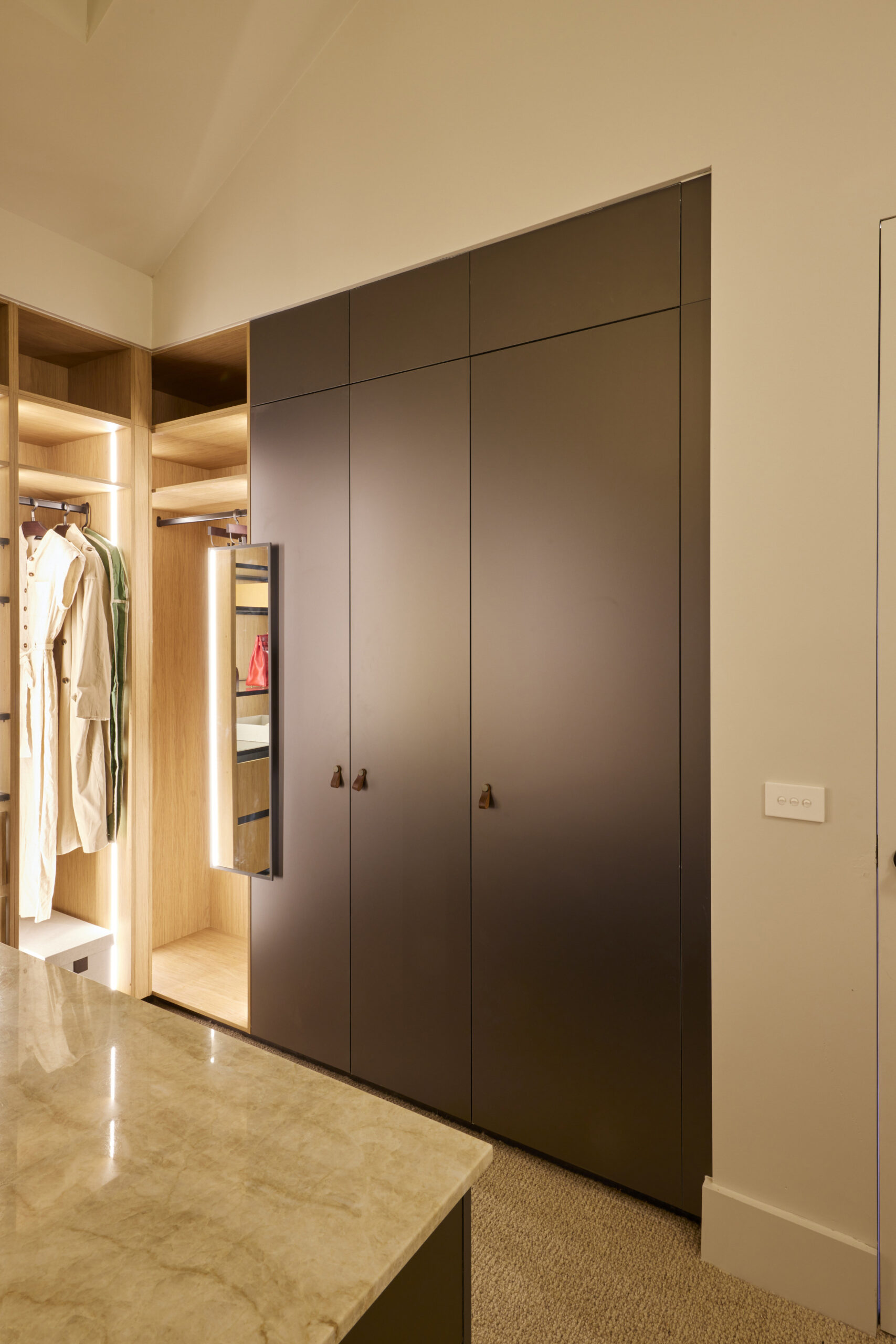 Taking last week’s feedback from the judges on board, Kyle and Leslie expanded their master bedroom and included a blade wall dividing their bedroom from the walk-in robe. At CSR we are a big fan of all the curves we are seeing this season on The Block, and we are loving the arches throughout this couple’s house.