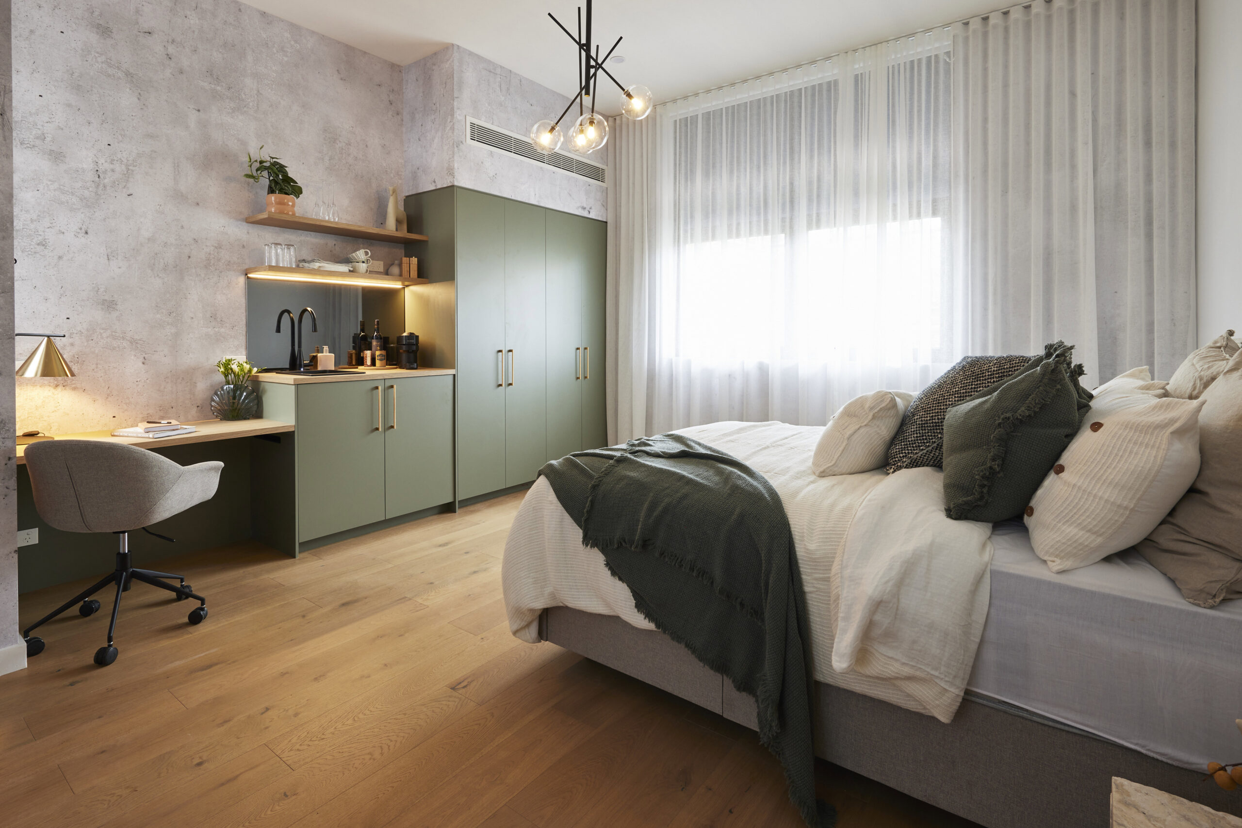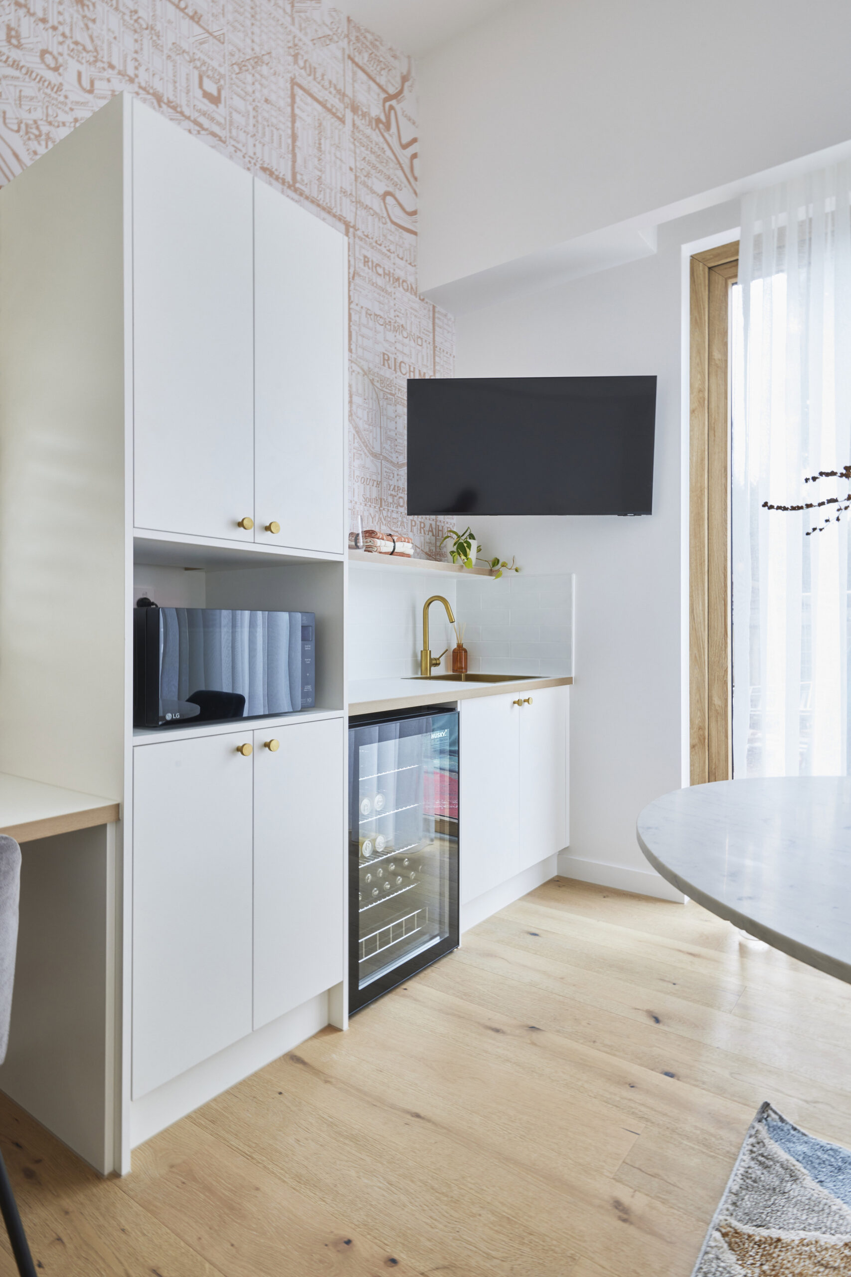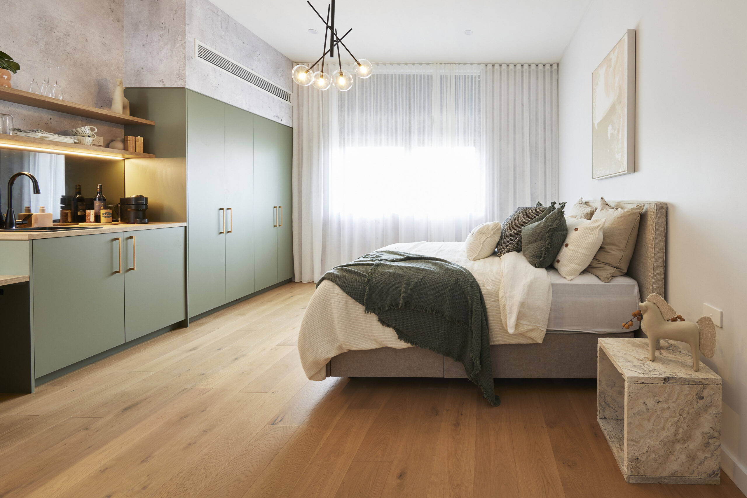 Kyle and Leslie’s studio was the largest on @theblock, with a generous bedroom and a second room that the couple turned into a Pilates studio. The Pilates idea was a decision questioned by the judges, who felt it was too limiting. We did like their use of arches throughout the space – this is such a strong trend in building at the moment. and a perfect use of Gyprock Flexible plasterboard. “Beautiful plastering, and those curves… so sexy,” said Shaynna. We agree.